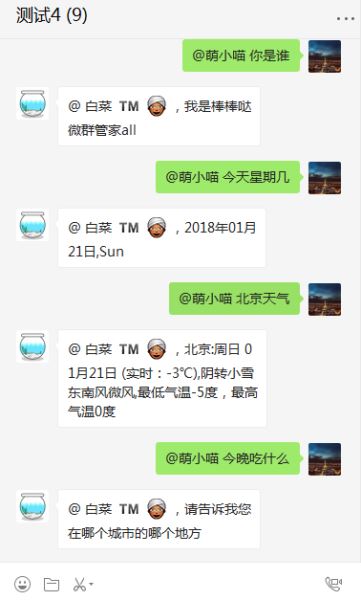 2) @昵称,开启后,机器人回复内容,会自动@聊天对象,但无@效果