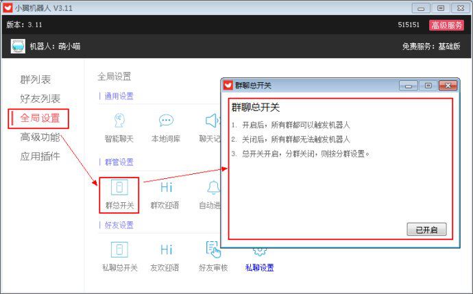 4. 群聊总开关,关闭后,所有群都无法与机器人聊天