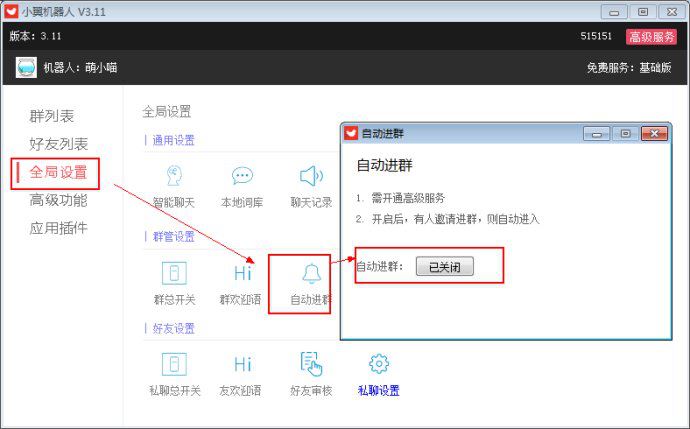 5. 自动进群设置