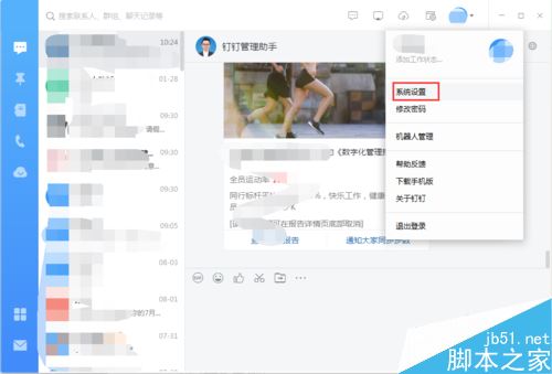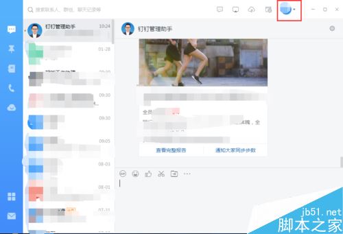 在电脑钉钉主界面点击右上方头像旁边的下拉框