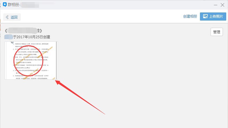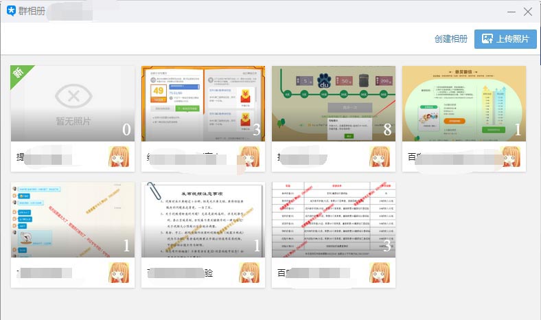 6、如果你的群中没有相关的通知怎么办,可以使用手机端先在相册中上传一张照片,这样电脑就可以看到通知了。
