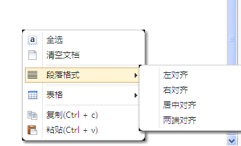 3、在内容的文本框空白处右击,会出现一个选择菜单,在这里可以设置段落对齐和表格。