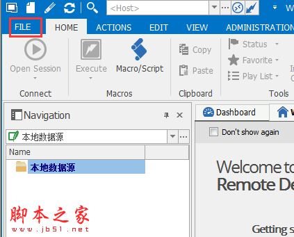 1、双击emote desktop manager破解版桌面快捷方式,打卡软件,打开软件后点击左上角的【file】。