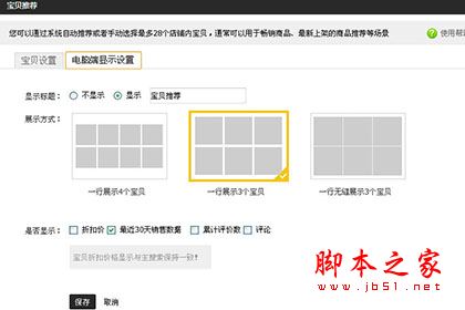 8、打开后可以看到宝贝在电脑端的显示设置,根据消费者喜好和宝贝的数量,选择展示方式和展示内容。