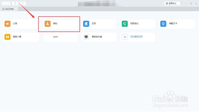 在OA工作台的一些列功能中,选择“审批”按钮,进入审批操作页面。