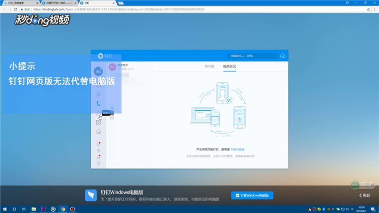4、/4钉钉网页版能实现电脑版的部分功能,但是例如电话会议、视频会议等功能是无法使用的。