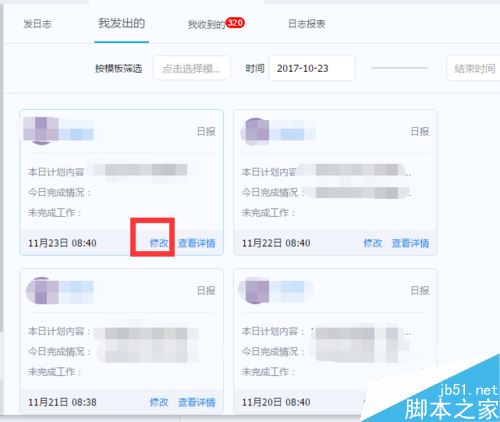 点击想要修改日志右下角的修改