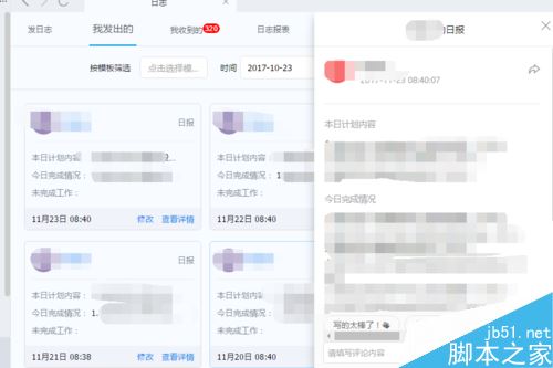 在日志详细页中点击我发出的