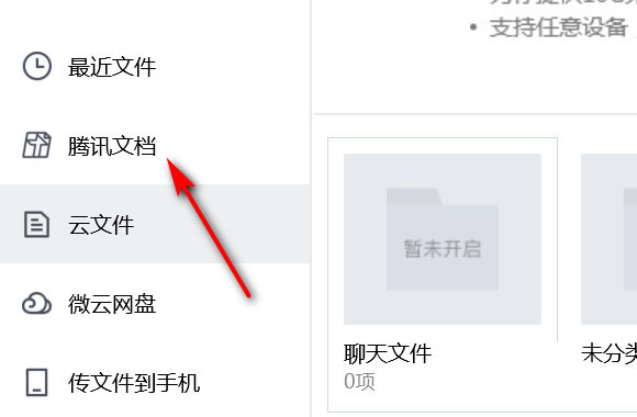 3、然后我们在点击右侧弹出的【腾讯文档】。
