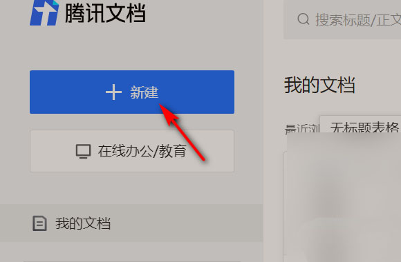 4、接着通过浏览器进入腾讯文档,我们点击【新建】。