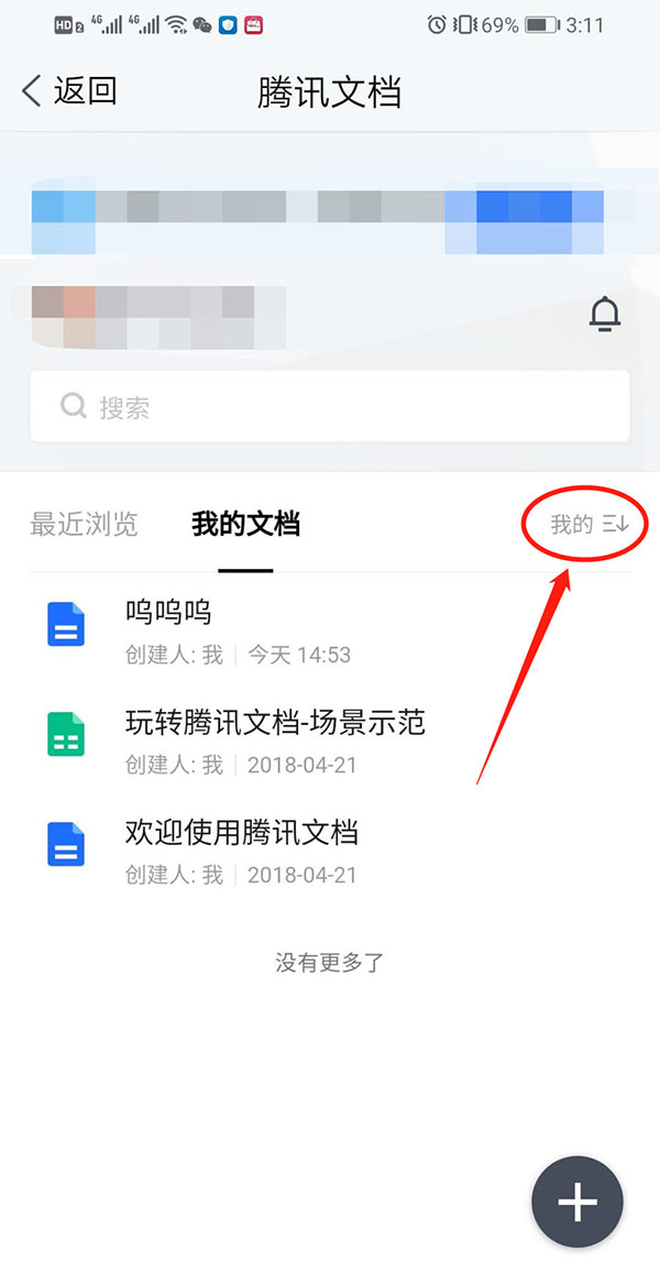4、点击腾讯文档(新建和上面步骤一样就不再重复了,我们看看怎么查看文档吧)