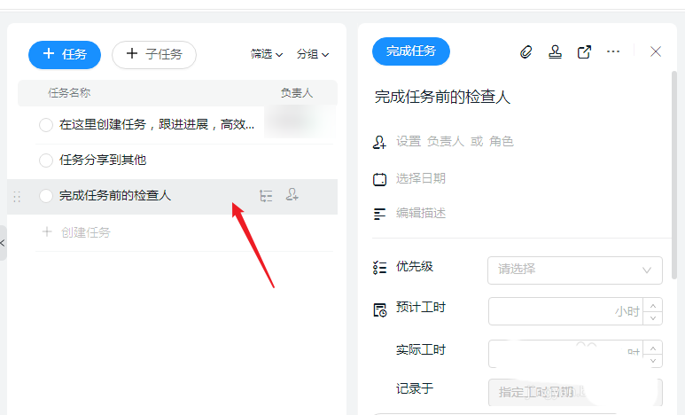 6、点击右边的小人头图标,选择一个成员作了当前任务的检查人员。