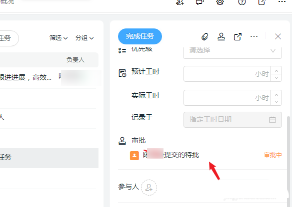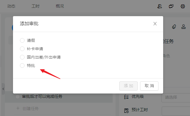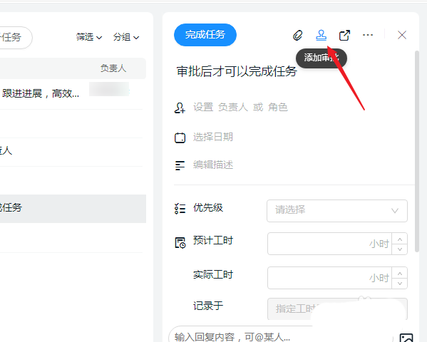 3、点击展开任务详细操作界面,点击右上角的【添加审批】