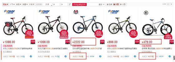 先来看看这个例子:从天猫上搜索一下“山地自行车”这个关键词。