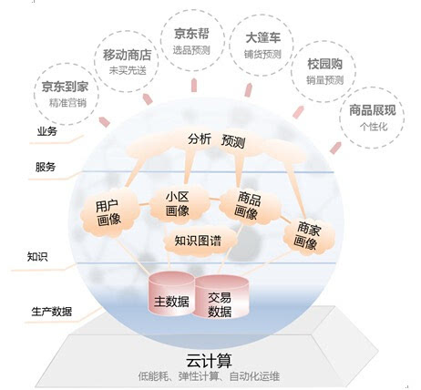 最底层为数据层面,这里汇总了京东海量的数据,包括主数据、用户交易数据、用户浏览数据等等,这些数据将构成机器的「学习资料」,通过对数据的挖掘,针对性别、年龄、购买力等多个变量为用户、用户所在小区(写字楼)进行用户画像。