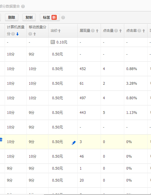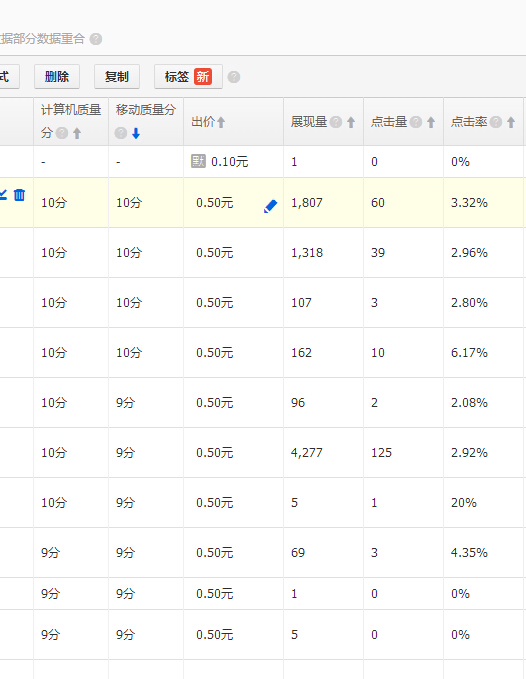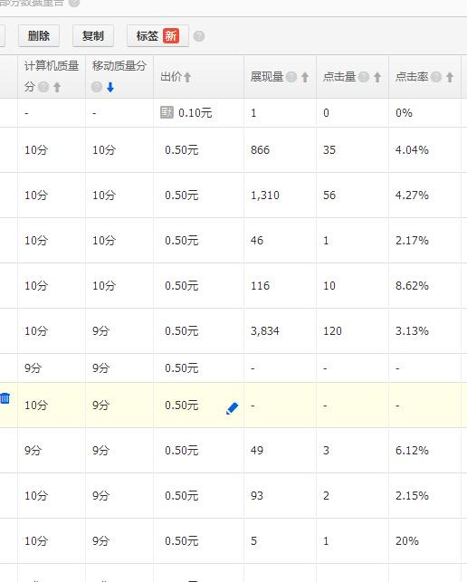 上面这个是PC端的推广效果,像这样的点击率PC端的质量得分能到十分吗?答案是不可能得。