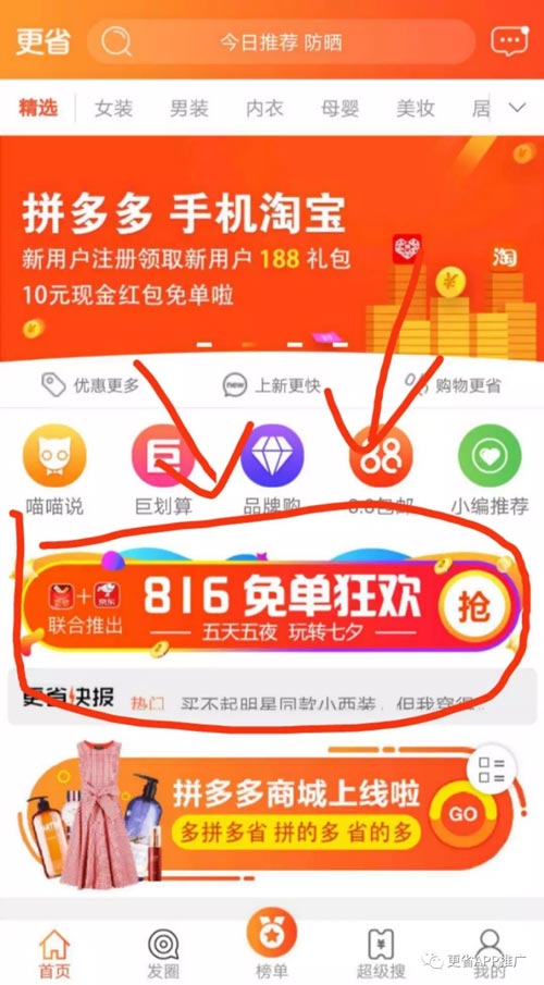 2.下载并登录激活更省app,在更省app的首页,点击下图的816免单狂欢
