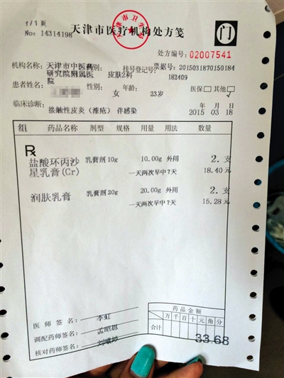 一位使用周梦晗面膜的粉丝,就医诊断结果是接触性皮炎伴感染。受访者供图