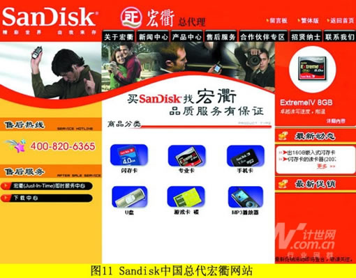 如果不是追求艺术美感和试验性的特殊网站,无论设计师想表达的东西是多么新颖多么富有创意,假如把网站头部设计得很复杂很难以理解,进而影响了用户的操作,那么它就很难成为一个优秀的网站。例如以下几个网页,在设计中就存在着一些因为不够重视交互性和用户体验而存在的问题:如图9,湖南省人民政府网站,所有同级内容无区分重复堆砌,容易让人视觉疲劳;图10,知名女性用品网站果皮网,右侧列表过于冗长,用户体验极差;图11,Sandisk中国总代宏衢网站,在简单的页面上采用了过多的烦琐的图片设计。