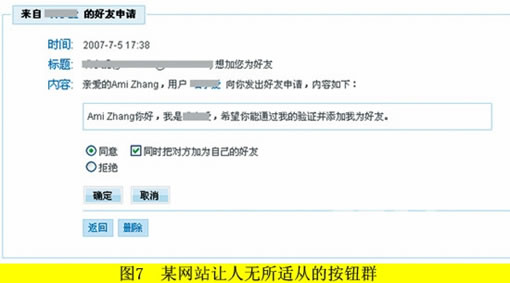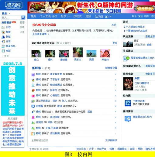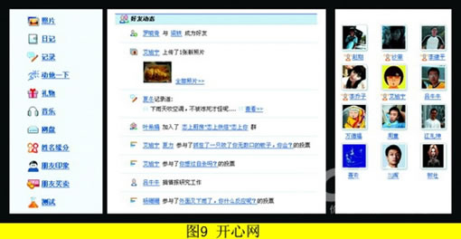 而图5所示的开心网的引导设计就完全不同,忽略了对博客的引导。开心网是一个以娱乐为主线索的网站,虽然它也涵盖有博客的功能,但是这不是它的重点和强项,于是开心网在各种环节上减少对博客的侧重,尽量简化对博客的引导,而重点发展其他有别于传统博客的互动性娱乐项目。