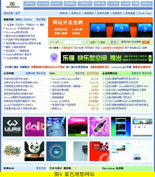 很多人把在网站中的设计定义为美术设计,认为设计师的工作任务就是使用Photoshop一类的绘图软件把需要展示的页面画出来,其实这是很狭义的理解。合格的设计师应该立足于整个网站的全局,在规划上对整个网站进行完整的设计,在宏观上把握设计风格导向,微观上再针对该网站的具体定位来决定如何对设计进行元素上的细化。当然,网站设计还包括了数据库设计及程序设计,在这里,我仅以我的从业经验,举例谈谈网站前端设计。