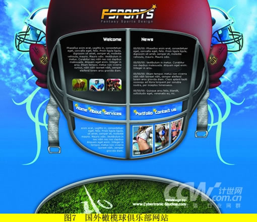 需要注意的是,传统网页设计的版式控制都是在不超越大众显示器分辨率宽度的前提下,依照内容多少纵向延展设计。而如今流行的产品型网站,更倾向于在一屏内表达最主要的东西,尤其是首页,尽量不出现滚动条。这里我们可以参考两个例子:图6,中国同学录5460主页面分割,虽缺乏均衡,但还算易用;图7,国外橄榄球俱乐部网站,少见的中央分割设计。