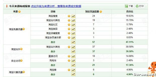 从上图最后一个一部分可以看出流量来源,淘宝流量来源十分复杂,从这个复杂的来源大家也许就能够分辨出来,淘宝确实没有那么容易,但是如果我们抓住了关键的话,其他的问题也就迎刃而解了!大家可以订阅淘蓝海邮件下载最新全套课程!