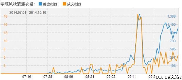 眼下马上就是秋冬季节,秋冬装的高客单价对于淘宝卖家来说是不小的诱惑。冬装比较暴利的就是羽绒服和皮草了,如果你有一定的实力,是完全可以往这个方面的操作的。比如我们可以看到 学院风秋装连衣裙这个相对较小的类目,逐渐有爆发的趋势。