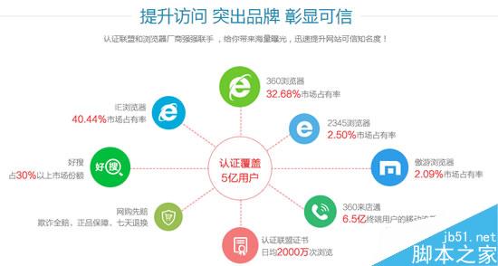 就是最近松松自己做的这个认证,上面详细介绍过了,属于主管互联网业务的工信部背景,采用国家标准,正宗权威,同时有360、IE、傲游、2345 等众多互联网终端展示,覆盖人群最广,据说能覆盖5亿用户,认证的展示效果比较好,不过据说审核标准比较严格。