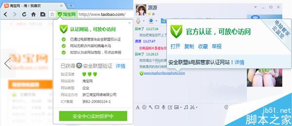 4. 用户终端展示(推荐):这种方式就是在用户终端如:浏览器、聊天工具、安全软件等展示认证标识,这种展现的效果要好一些。