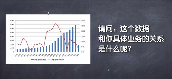 【误区二:找行业大数据】不管你是去找一些艾瑞数据截图或是DICC 的数据截图,去直接套行业数据。可这些数据根本就不是你面对的这家公司产品所需要的数据,对业务有帮助的数据。 这些大数据对你公司的产品与业务什么都不意味着。
