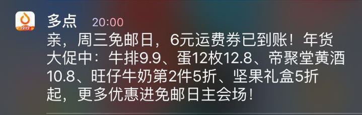 对于优惠信息的推送,内容比文案更重要,说的不负责任一些,如果是用户真正感兴趣的优惠活动,哪怕文案中有错别字,效果也比不相干的优惠信息要好,具体怎样利用算法检索出用户偏好不在本文的讨论范围内,但上文这种的推送在春节前优惠信息爆炸阶段很容易被埋没。