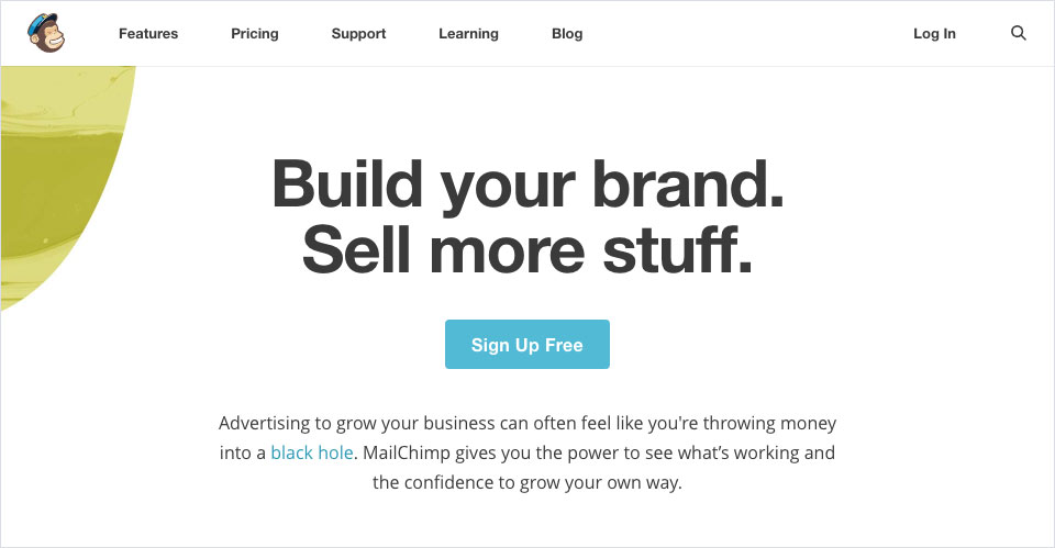 例如企业邮件应用Mailchimp和Slack就是扁平结构的典型代表,它们的导航都只有一级,把所有页面入口都放在外面,最重要的功能、定价位于前两个位置,其余的根据重要性递减排列,最右边一般会放注册或登陆入口: