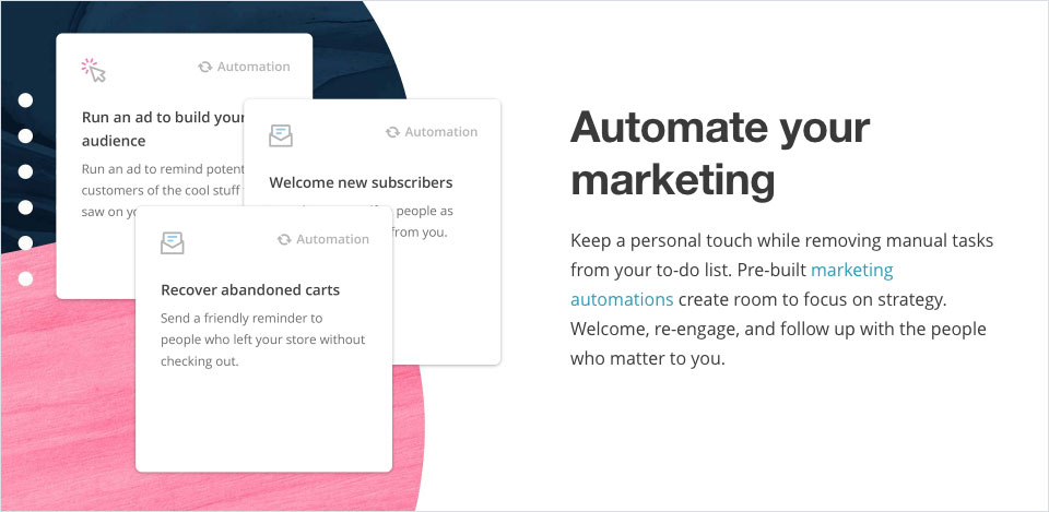 MailChimp用与首屏标题同样风格的文案,配合界面图来强化USP: