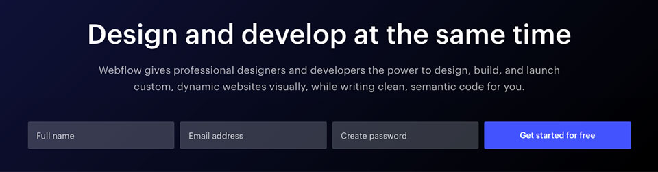 Webflow则直接把需要填写的注册项全列出来,这适用于注册项在三个以内的情况: