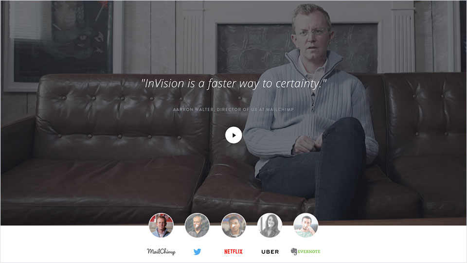 越来越多的公司已经不满足于静态讲故事,例如Invision,他们开始使用更专业、更有说服力的采访短片来作为客户成功案例: