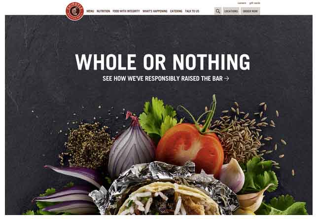 现在,网页设计整体趋向于单页网站设计。这种趋势是由于对追求简单和速度的推动。简单的单页网站也是一种很好的响应式设计,并且可以适应所有设备。当然,也有很多情况下需要用到多页设计。比如,快餐网站Chipotle为了便于快速浏览菜单,使用的就是多页面设计。