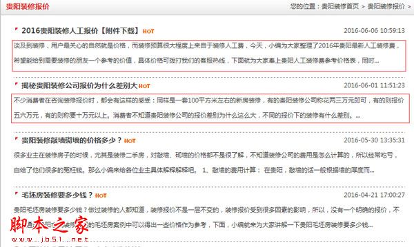 网站的新闻列表页,也是可以进行一些操作提升权重的,要灵活运用文章摘要,这样可以突出页面内容,减少页面重复率,可看下图:
