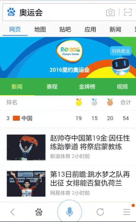 如果大家还不太明白百度MIP是什么,我们可以给大家举一个例子,就是现在大家比较关注的奥运会,可以在手机百度里搜一下这个词,出来的结果就是引用百度MIP的一个效果。