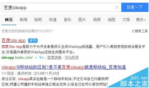 第一步,百度搜索百度siteapp,找到他们的官方网站,如下图: