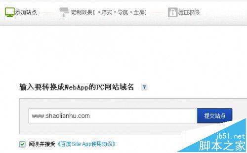 第三步,输入想要转换的PC网站网址,阅读并接受,然后点击提交站点,下一瞠步,如下图: