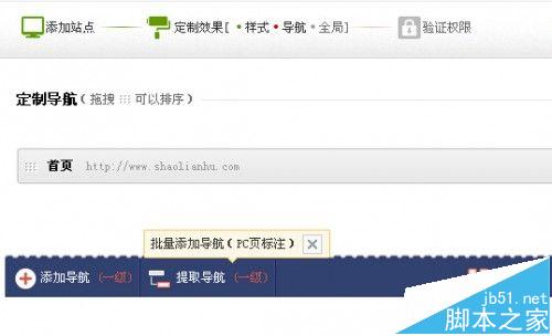 第五步,设置导航,可以自己添加,也可以自动抓取等,然后点击下一步,如下图: