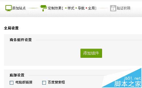 第六步,设置组件,可以添加,邮箱,电话,版权等信息,点击下一步,如下图: