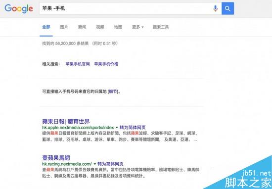 比如,如果你是苹果日报的忠实读者,却不知道从哪一天起,搜索「苹果」铺天盖地的都是 iPhone 和苹果公司的结果,这时候该怎么报?试试看「苹果 -手机」,这样就可以找到只含有「苹果」,但绝不含「手机」的结果了。