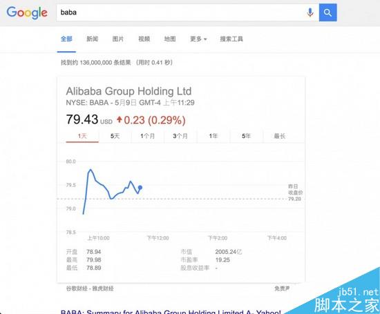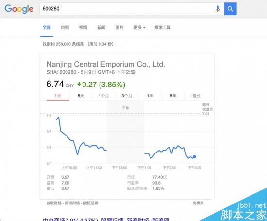 Google 可以帮你查 A 股、港股、美股等各种股票,你只需要输入股票代码,不管是像A 股的数字代码「600280」,还是美股中的爸爸「BABA」,股价就会实时闪现。