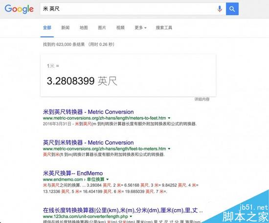 日常生活里,总是会遇到各类换算,如面积、温度、汇率、时间等等,你可以直接试着输入你想换算的两个量纲,Google 会自动提供换算功能。