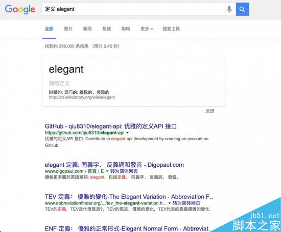 在搜索关键词前加上「定义」或「翻译」,Google 就可以帮你查单词或做翻译。不过,如果 Google 使用的是中文语言,查单词会直接使用 wiki,这样会导致无论是释义还是词库都非常不完备。推荐使用英文语言的 Google 并配合「define 关键词」,无论是释义还是词库都更加完善。