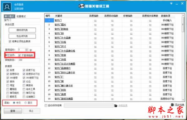 3、设置查询延时和数目。假如追求速度,可以勾选不查询指数(如上图);