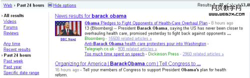 例如,搜索过去24小时内关于巴拉克·奥巴马(Barack Obama)的内容: