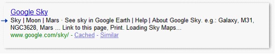 网页摘要包含了页面中页脚的文本;通过 google.com 搜索[ google sky ]的结果。2009年9月。